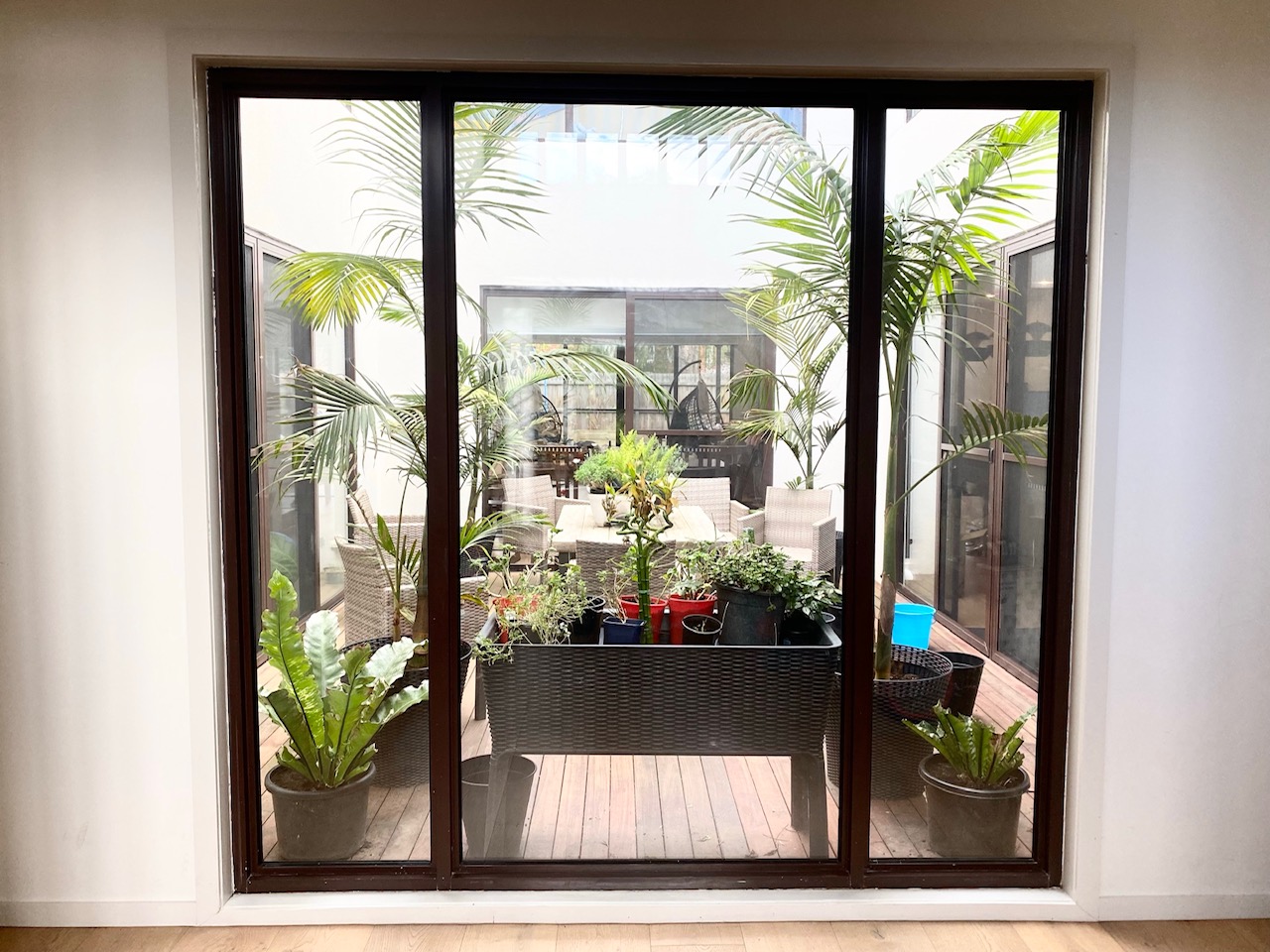 A young family required a home with a simple, clean layout to allow flexible use and one that could cater for future growth.A small but well-proportioned courtyard sits at the centre of the house, offering a successful alternative to the traditional suburban backyard.An abundance of natural light and high degree of visual interconnection are enabled by three successive double-height voids within the building: the entry, the courtyard, and the family area at the back.The façade presents a striking juxtaposition of light and dark, cleverly created by dark materials and shadow contrasted with light surfaces and glazing. The geometry of the design is deceptively simple; the result harmonious.
