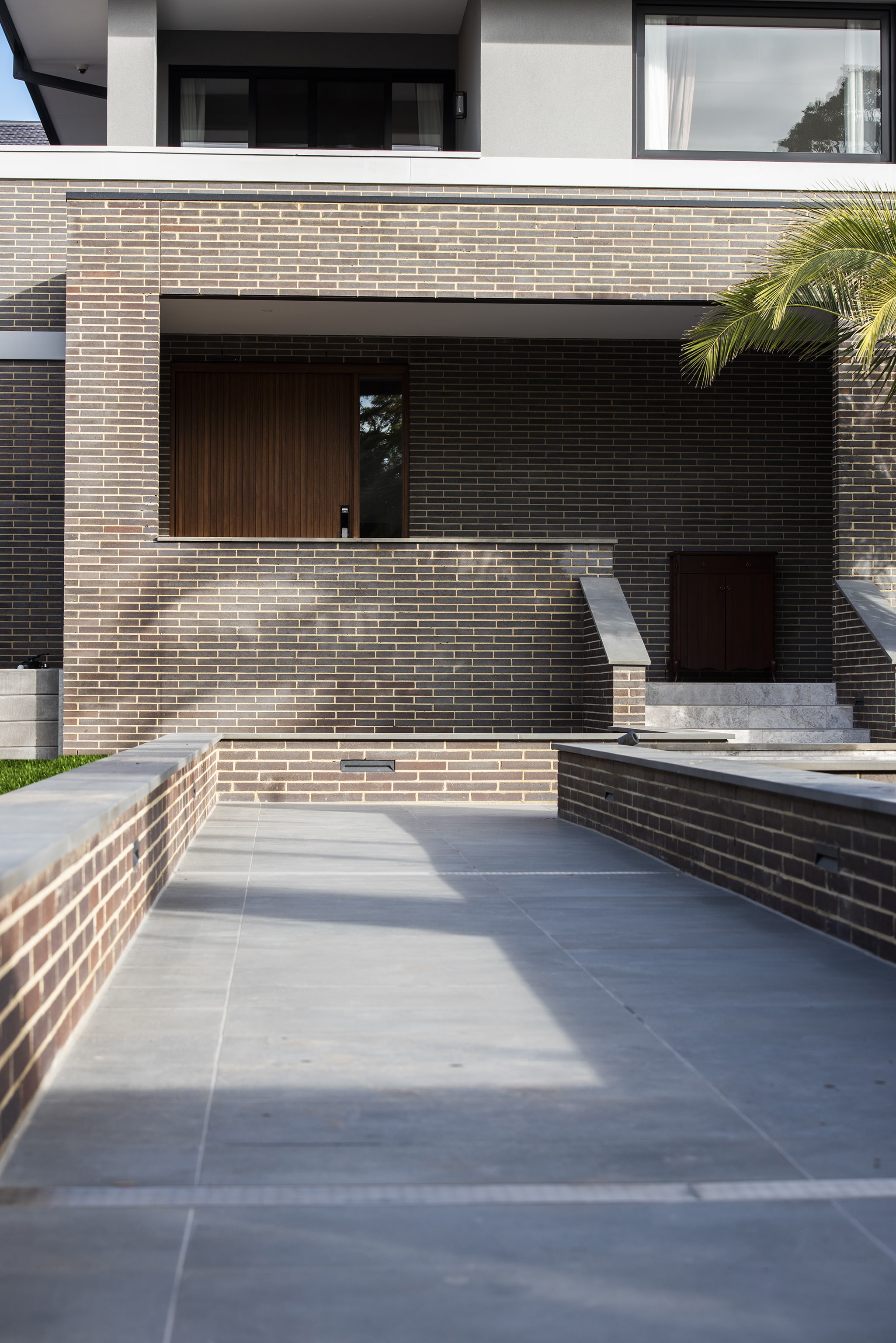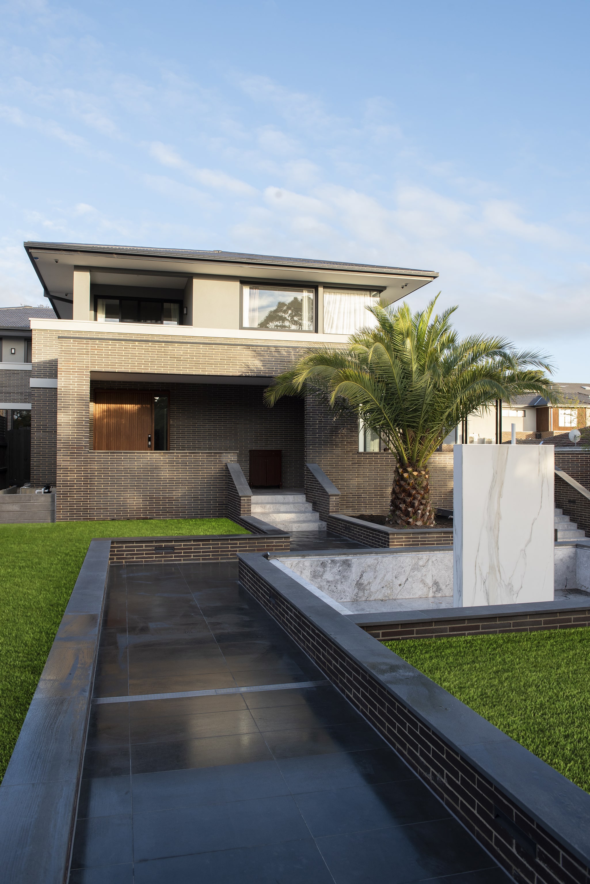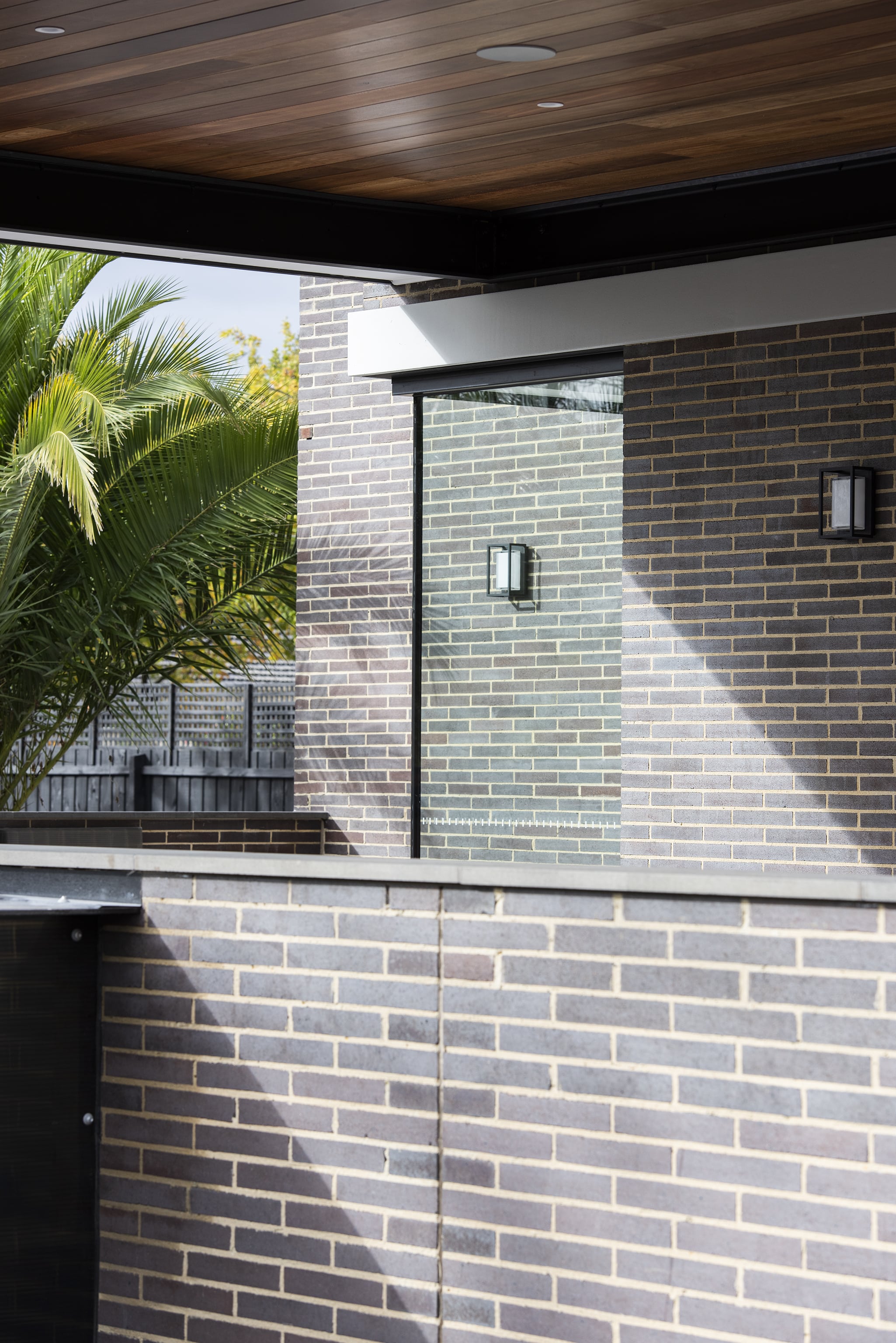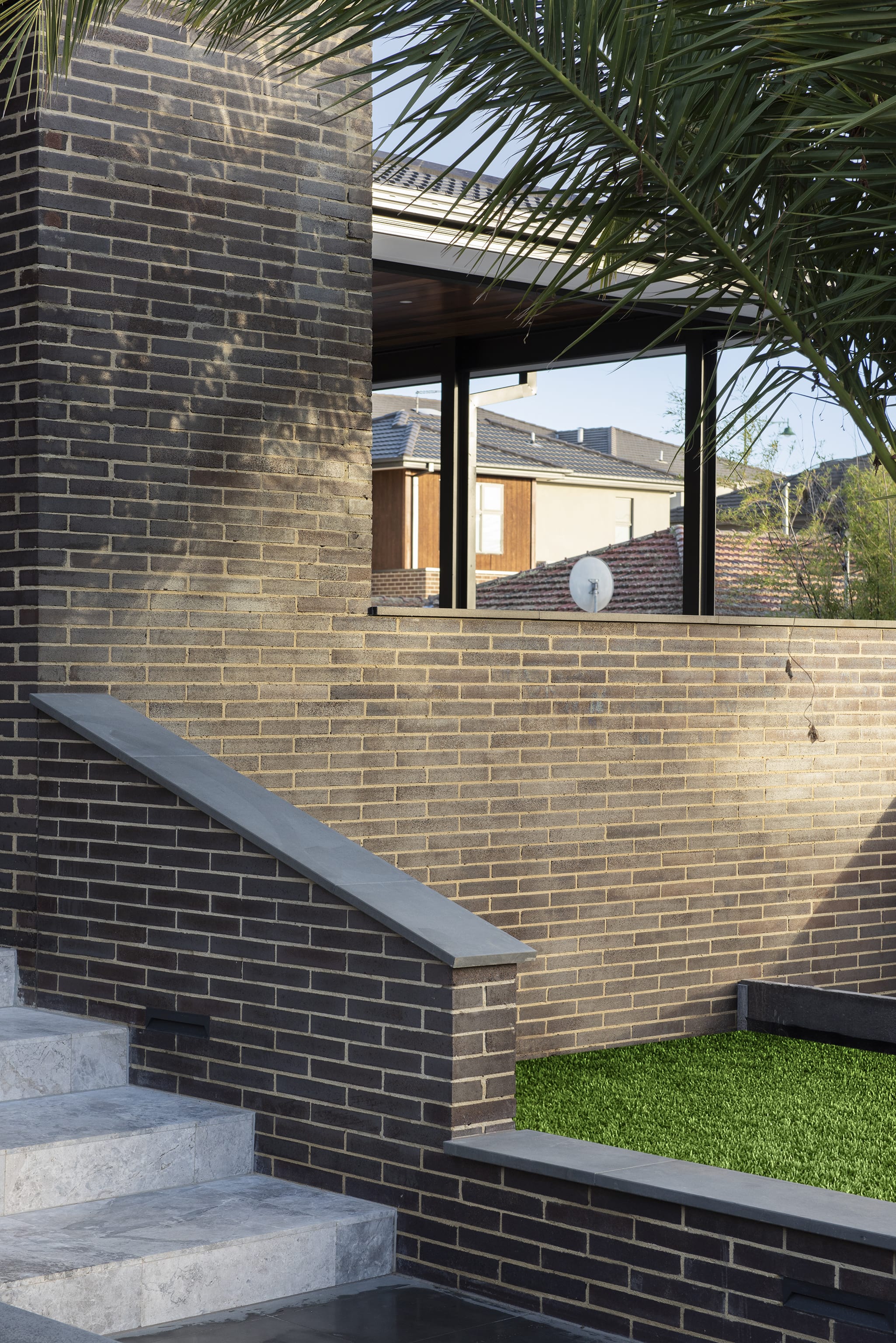 A water feature adds a calming element, bringing soothing sounds to the arrival experience.The home’s entry is hidden initially. The user is drawn along a pathway lined with brick walls which rises 1,600mm from the street to the doorway.Pause points are located along the way, offering the visitor moments to stop, sit, and take in the surrounds.The house itself refers back to the early 20th century Prairie style of architecture which emerged in Chicago.