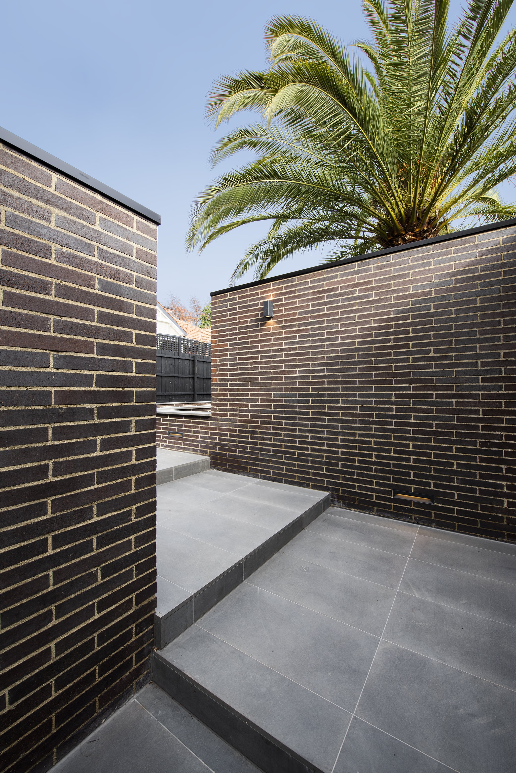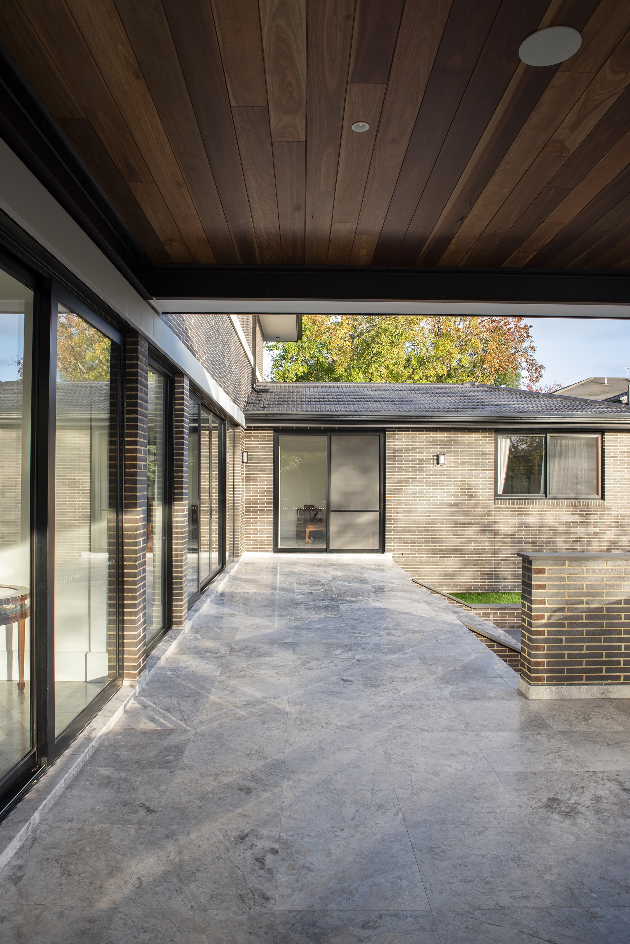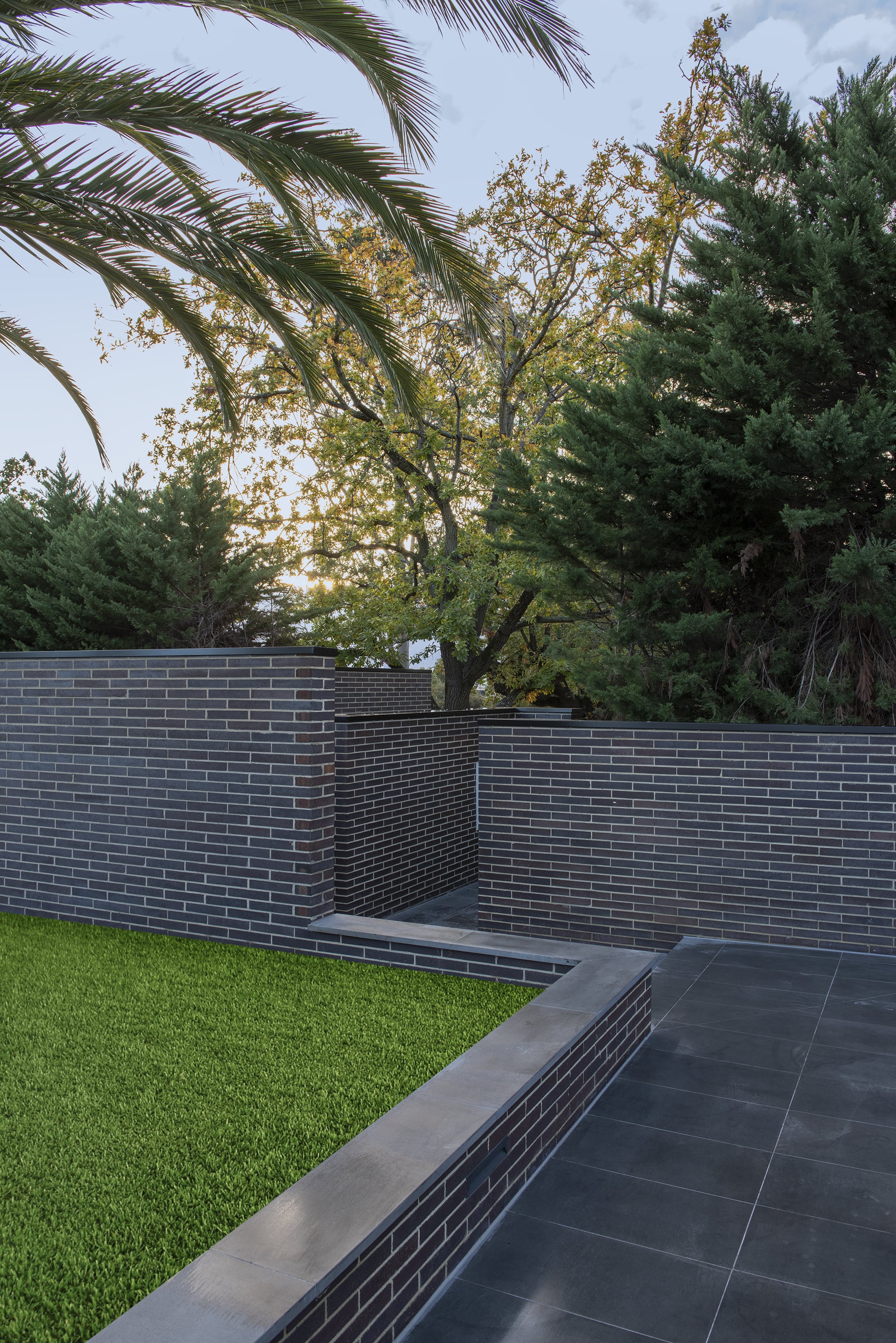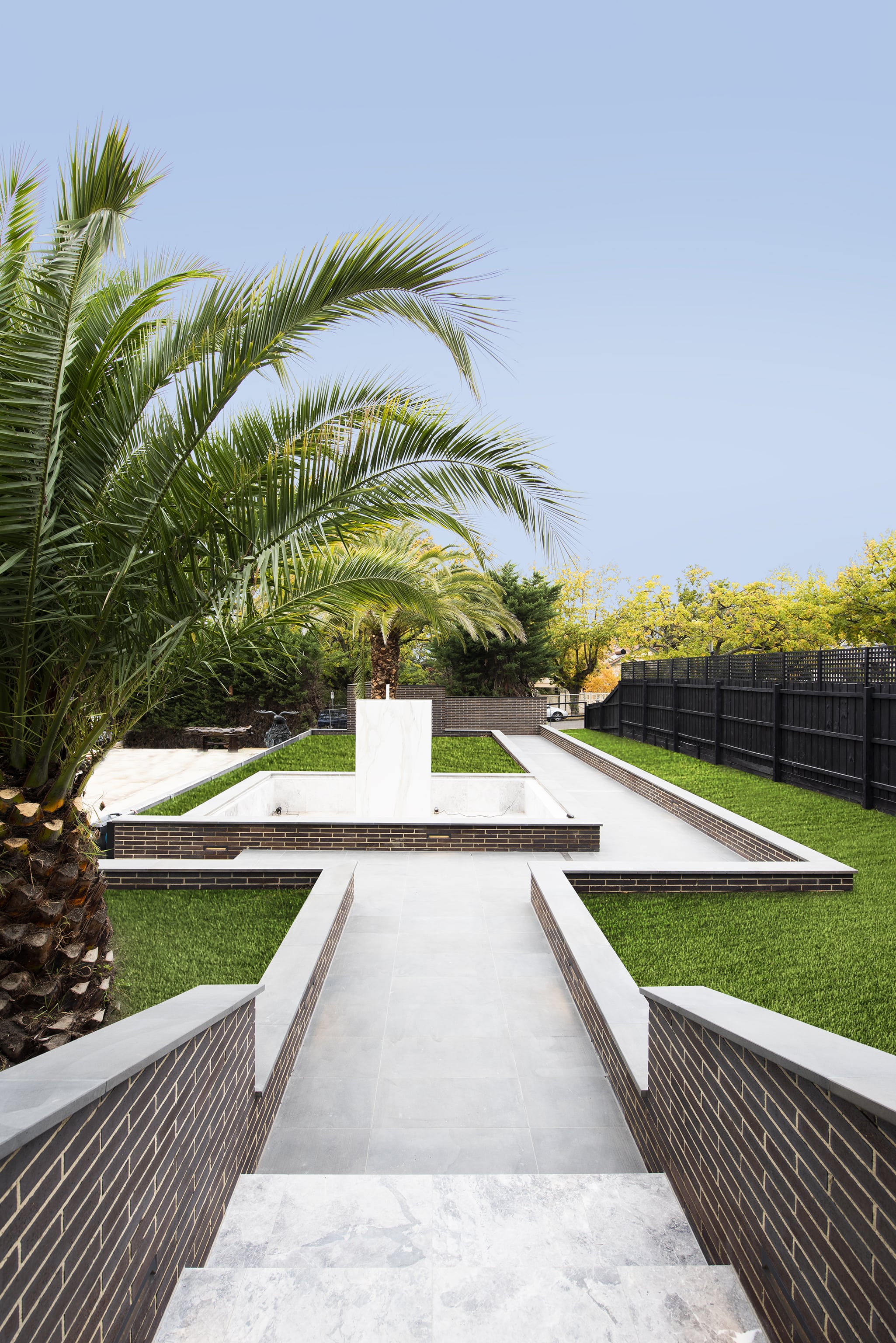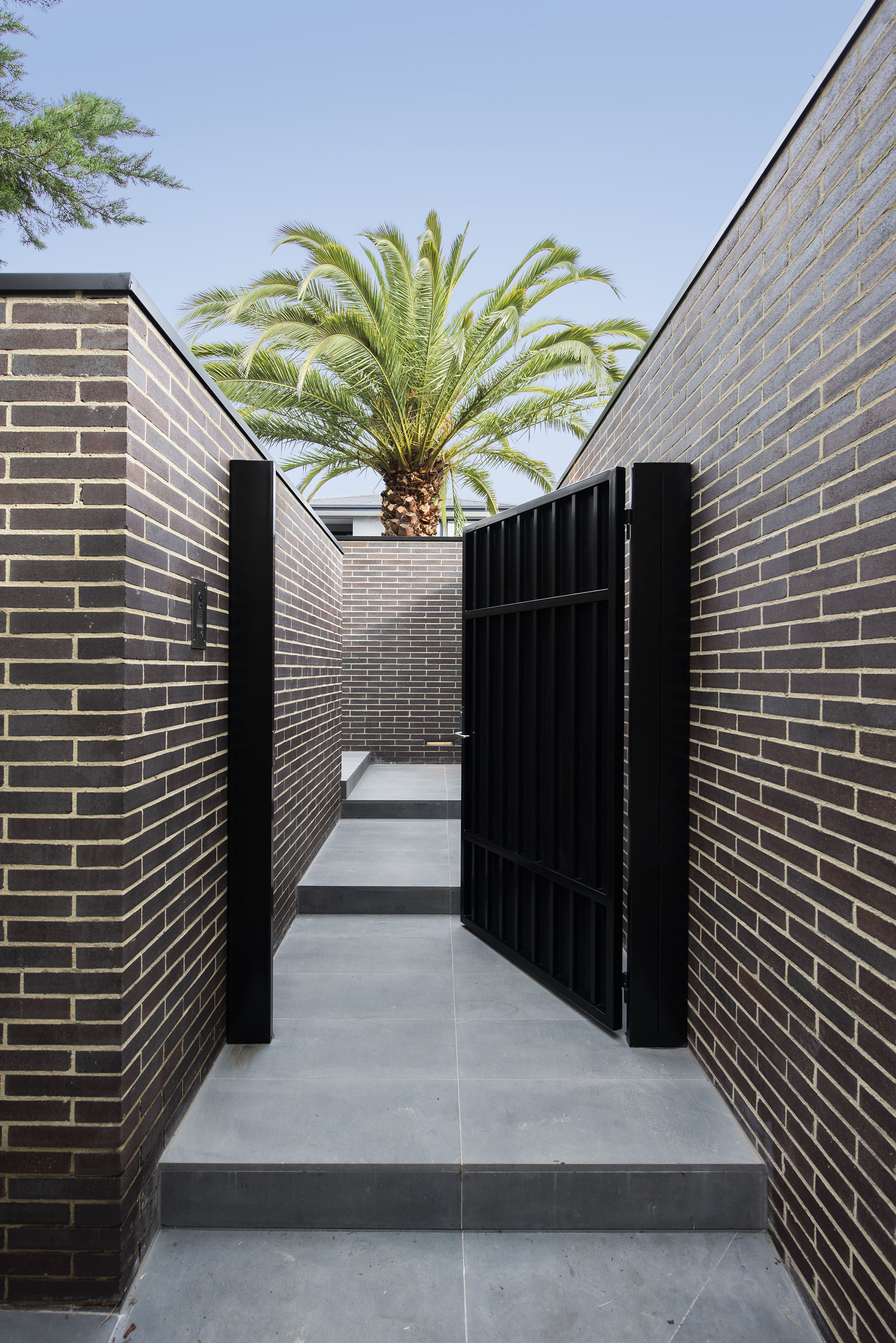 A water feature adds a calming element, bringing soothing sounds to the arrival experience.The home’s entry is hidden initially. The user is drawn along a pathway lined with brick walls which rises 1,600mm from the street to the doorway.Pause points are located along the way, offering the visitor moments to stop, sit, and take in the surrounds.The house itself refers back to the early 20th century Prairie style of architecture which emerged in Chicago.